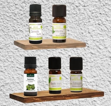 Vous pouvez emporter de l'huile essentielle de menthe poivrée à 3,15€ qui désinfectera et calmera vos nausées et de l'huile essentielle de feuilles de cannelle à 3,o5€ qui est un assainissant plus doux que l'huile essentielle de cannelle écorce . Vous pourrez y rajouter de l'huile essentielle d'estragon à 4,95€ , car non seulement, c'est un antiseptique intestinal, mais en plus, il fait office d'anti histaminique ce qui pourrait vous aider, si vous êtes allergique à une plante qui pousse dans le pays que vous visitez : Bien sûr, comme je l'ai précisé précédemment, avant de vous servir de ces huiles essentielles faites un test en mettant une goutte d'huile essentielle sur votre poignet et attendez 48 h pour voir si vous n'y êtes pas allergique. Attention précautions a prendre voir vidéo