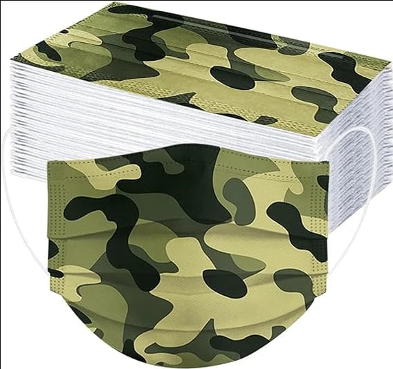 MEI Bax 50pcs Tissu Adulte Non-tissé 3 Plis Protection Faciale masque jetable Motif Imprimé Camouflage Couvre-Chef Visage Foulard Course Pied Randonnée Catégorie 1 Pour Homme et Femme