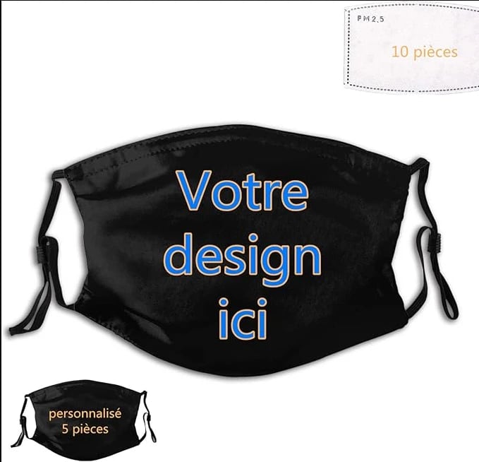 Enfin , si dans Tout ce qui vous est proposé, vous ne trouvez pas votre bonheur : Eh bien, maintenant. Vous pouvez personnaliser votre masque .. En effet, Il y a sur Amazon, une entreprise qui vous propose de personnaliser votre masque et elle vous l'imprime. Mais il n'y a pas, que cette possibilité, car ce masque possède une poche qui peut recevoir un filtre pour augmenter votre sécurité.